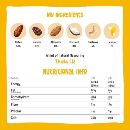 £18.00Original price was: £18.00.£9.90Current price is: £9.90.Flavour Lemon Diet type Gluten Free, Vegan Number of items 18 Unit count 630.0 gram Brand Nakd Age range (description) Adult Material feature Gluten Free, No Added Sugar, Vegan Total each 1 Item weight 0.63 Kilograms Allergen information Contains: Almonds, Gluten Free, Dairy Free, Cashews, Wheat Free -